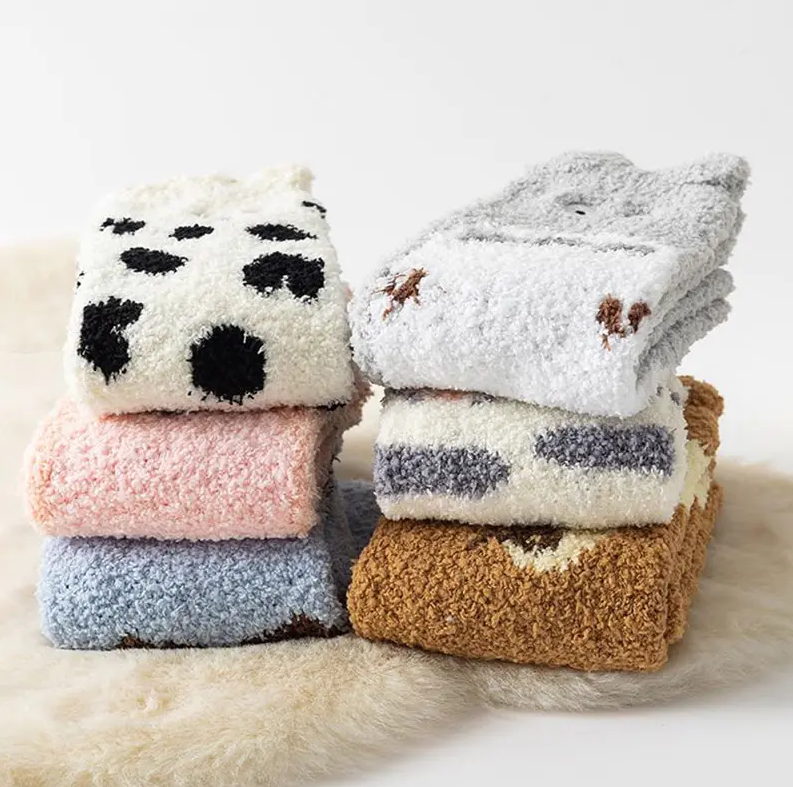 Chaussettes en polaire corail : Rétention de chaleur extrêmement élevée, avec une capacité de stockage rapide de la chaleur, une douceur semblable à celle d'un nuage et un séchage rapide après le lavage, ce qui en fait un choix rentable pour la maison, le sommeil et les activités intérieures.
